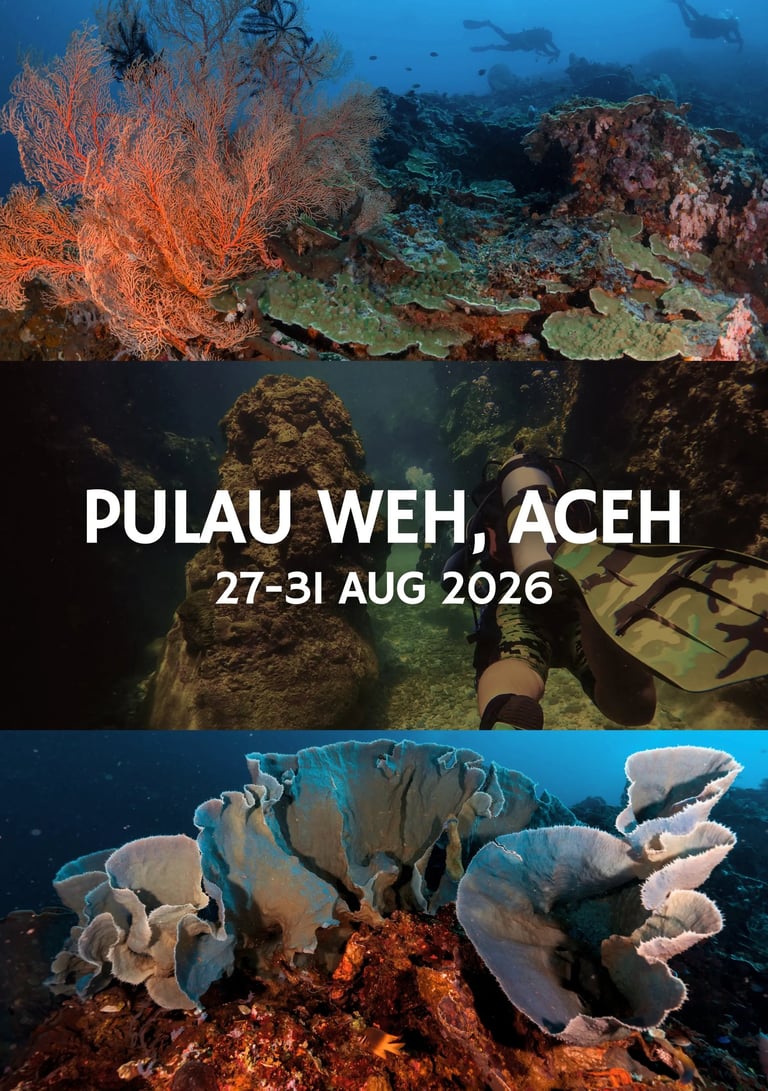 Dive into Pulau Weh’s crystal-clear waters, where vibrant coral reefs, dramatic walls, and rich marine life thrive at the meeting point of the Andaman Sea and Indian Ocean.